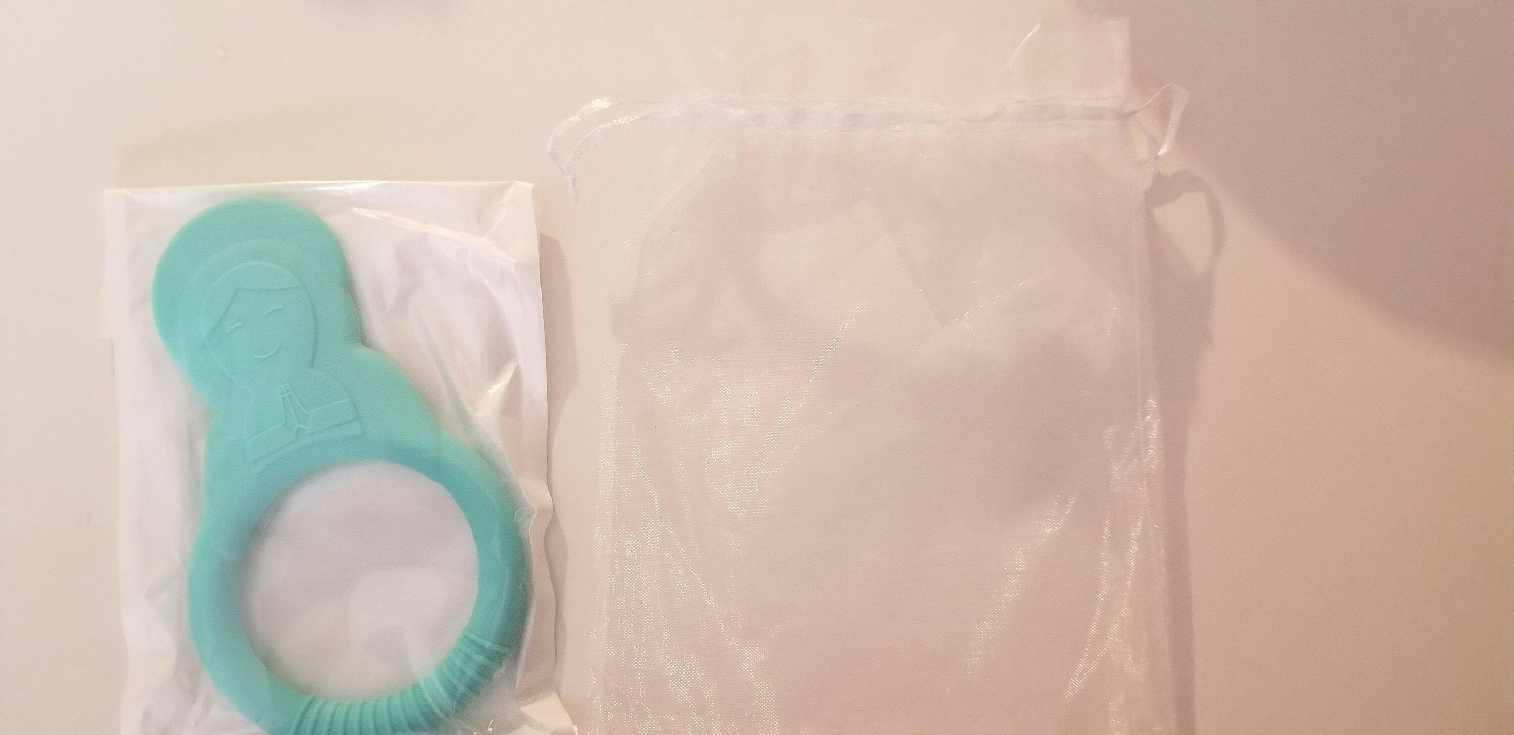 Teething is hard. When earthly mom is out of tricks it's Mama Mary to the rescue! Introduce your baby to Our Blessed Mother with this adorable non-toxic silicone teether. The soothing teal color is a customer favorite and perfect for boys and girls. Pair it with one of our Mini Rosary Pop-its for the perfect Catholic baby gift!